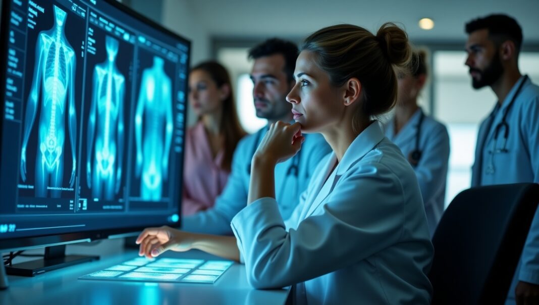 3. Assisted Reading: As the radiologist views the scan, the AI works in the background. It might highlight a potential lung nodule, measure the size of a lesion, and cross-reference the finding with the latest clinical guidelines.